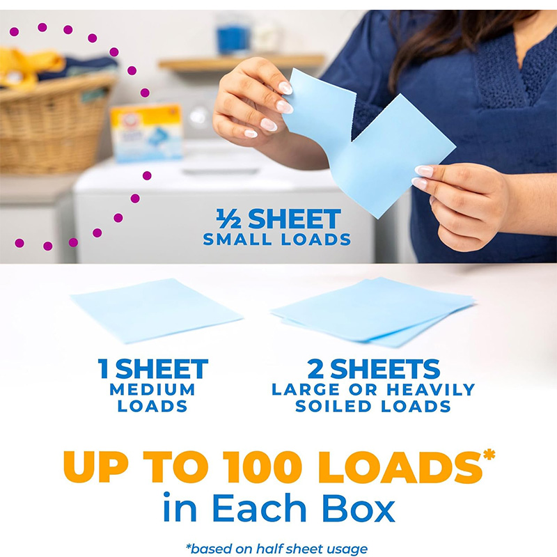 - One 50 count box of the Laundry Detergent in Fresh Linen scent cleans 50 medium loads (up to 100 small loads) when used as directed; this concentrated laundry detergent delivers a powerful, deep clean on dark clothing or white clothing with no bleach
